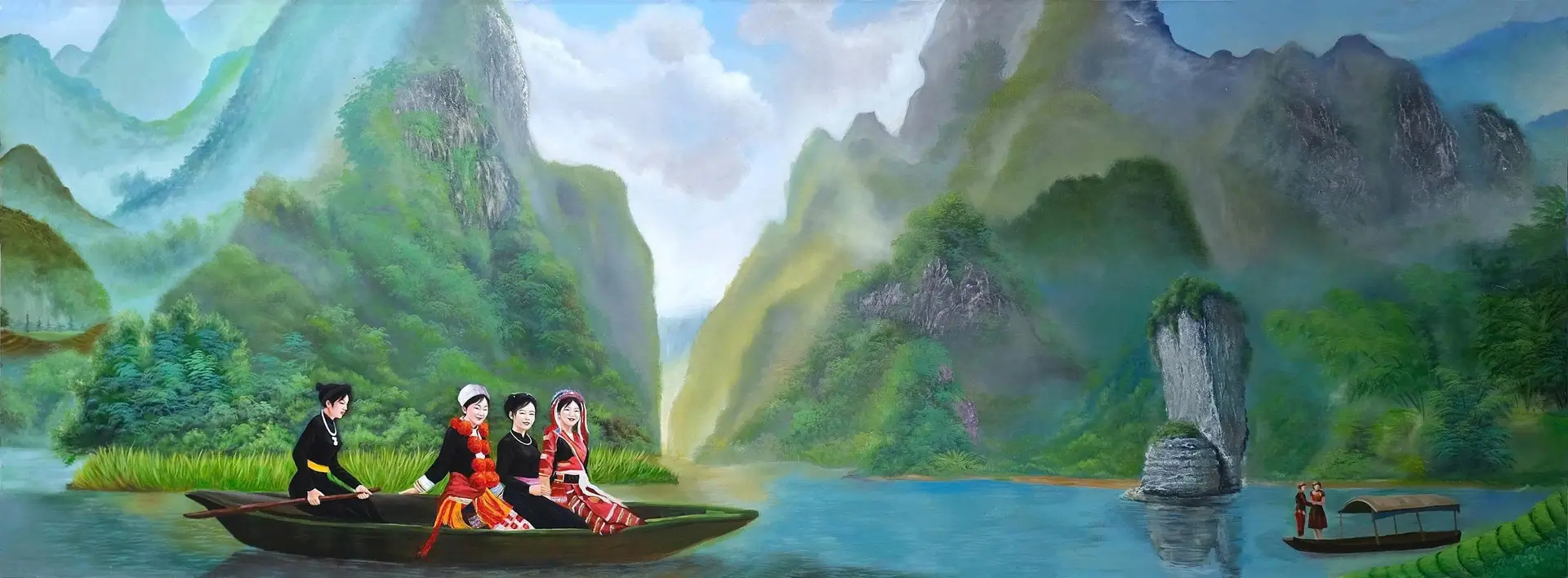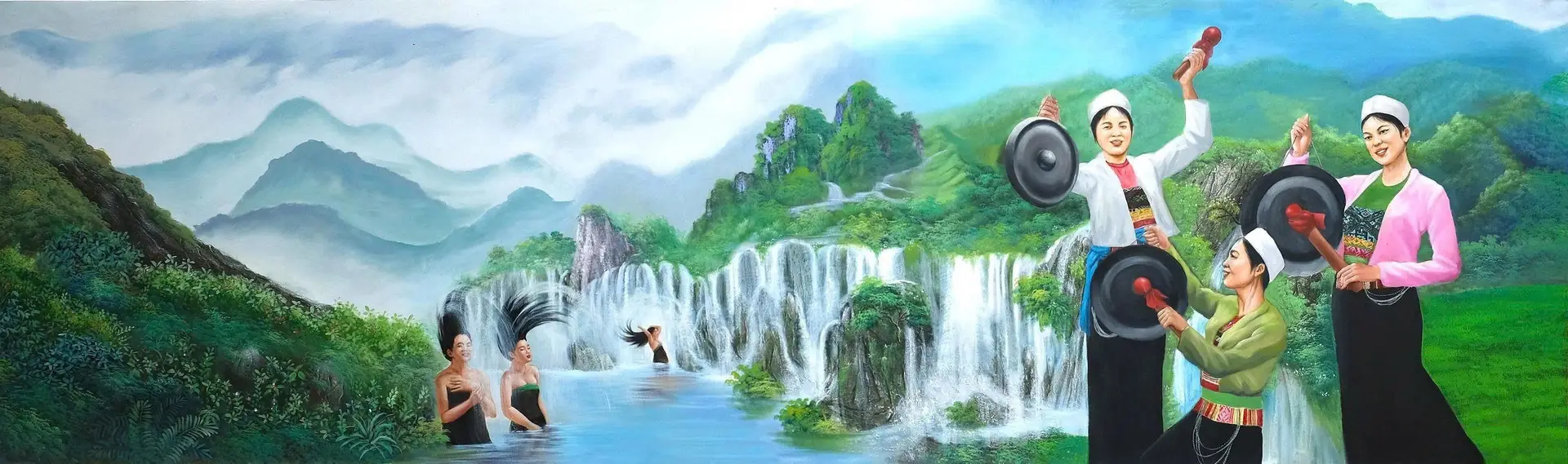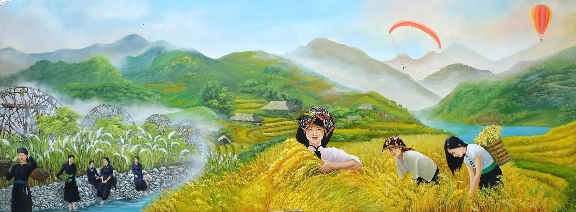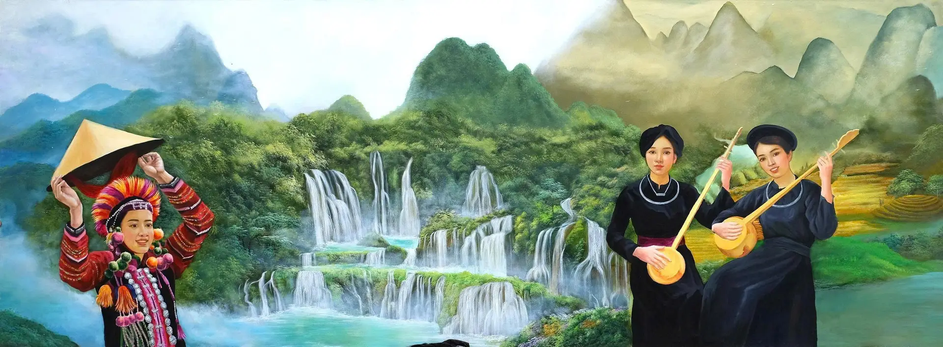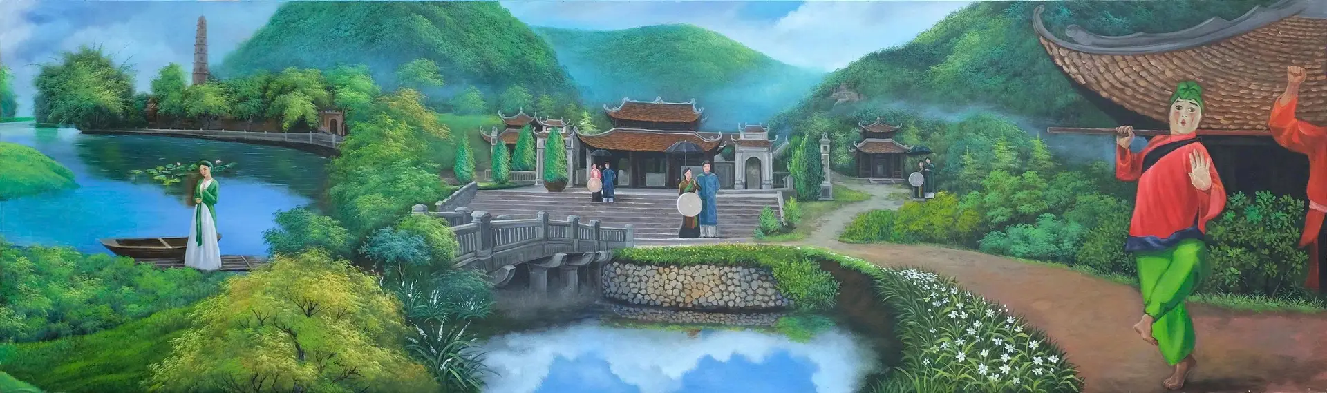 The “Hello Vietnam – My Homeland” collection is a monumental work of art by artist NGÔ BÁ HOÀNG of the University of Industrial Fine Arts. The series consists of 63 pieces created since 2024, arranged in a continuous composition to form a spectacular panorama over 300 meters long. The works depict landscapes, architecture, and people from every region of the nation—from the Lũng Cú flag tower to the shores of Mũi Cà Mau—like a grand epic about the land, its people, its culture, and the beauty of Vietnam. With a vivid and realistic brushwork style and a bright color palette that reflects the unique characteristics of each locality, Ngô Bá Hoàng has constructed a vision that is both diverse and unified. His art is rich in emotion and artistic value, contributing to awakening a sense of national pride, love for the homeland, and the aspiration to build a prosperous and beautiful Vietnam.